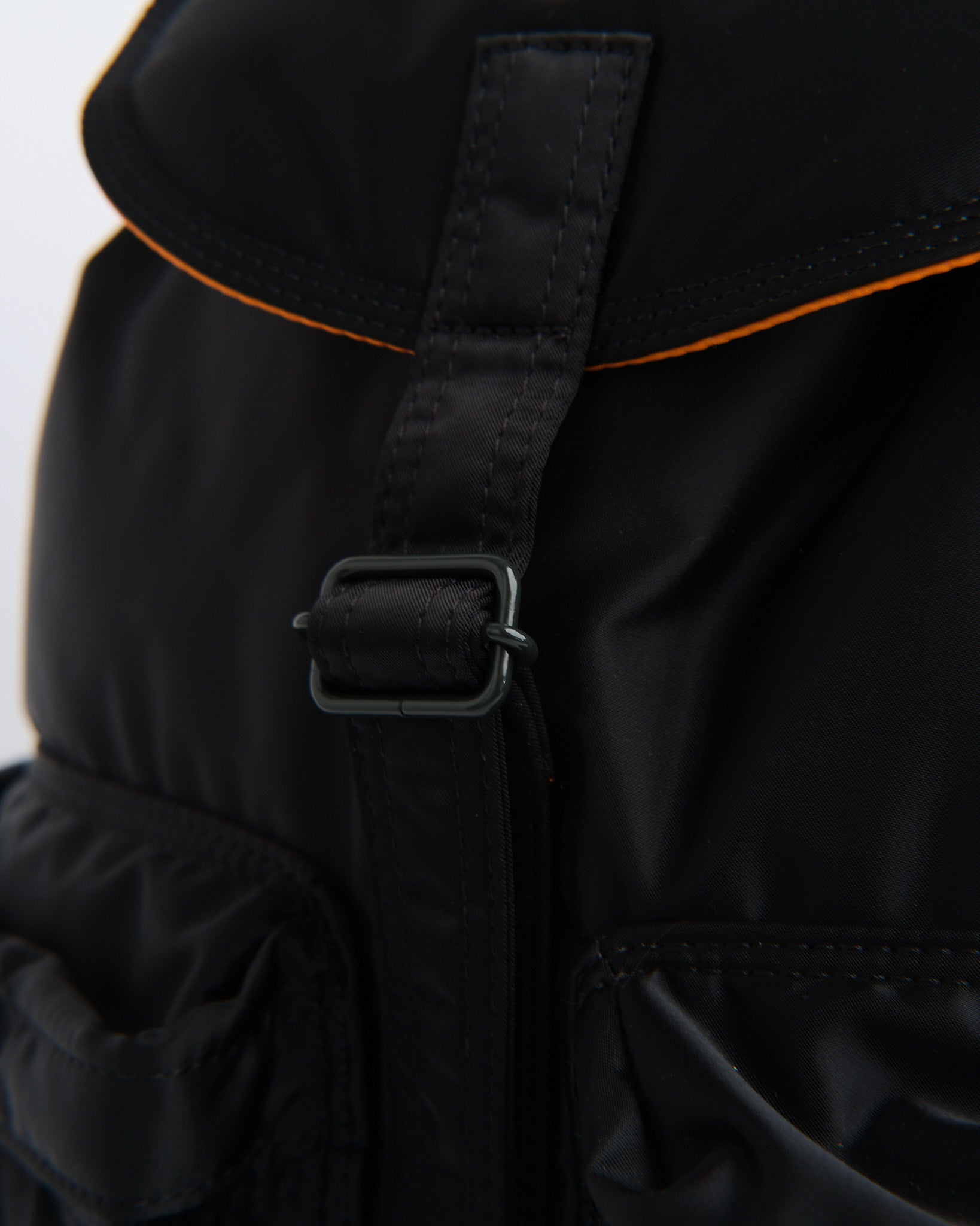 Upptäck PORTER YOSHIDA 622-79312-10 TANKER RUCKSACK i BLACK. Denna ryggsäck är perfekt för daglig användning och är utformad för att enkelt förvara A4-dokument. Sidodragkedjan ger direkt åtkomst till huvudfacket, vilket gör att du kan lägga in och ta ut dina saker utan att öppna fliken. Med två frontfickor som har veckbredder erbjuder den hög lagringskapacitet och funktionalitet. Tillverkad av slitstark nylon twill med en polyester-bomullsväv och fodrad med nylon taft, har denna ryggsäck också ett broderat Porter-märke, aluminiumfästen och tryckknappar. Handgjord i Japan, kombinerar den praktisk design med överlägsen hantverksskicklighet. Mått: 330 x 430 x 130 mm (13in x 16.9in x 5.1in). Vikt: 550g (19.4oz). Volym: 16L.