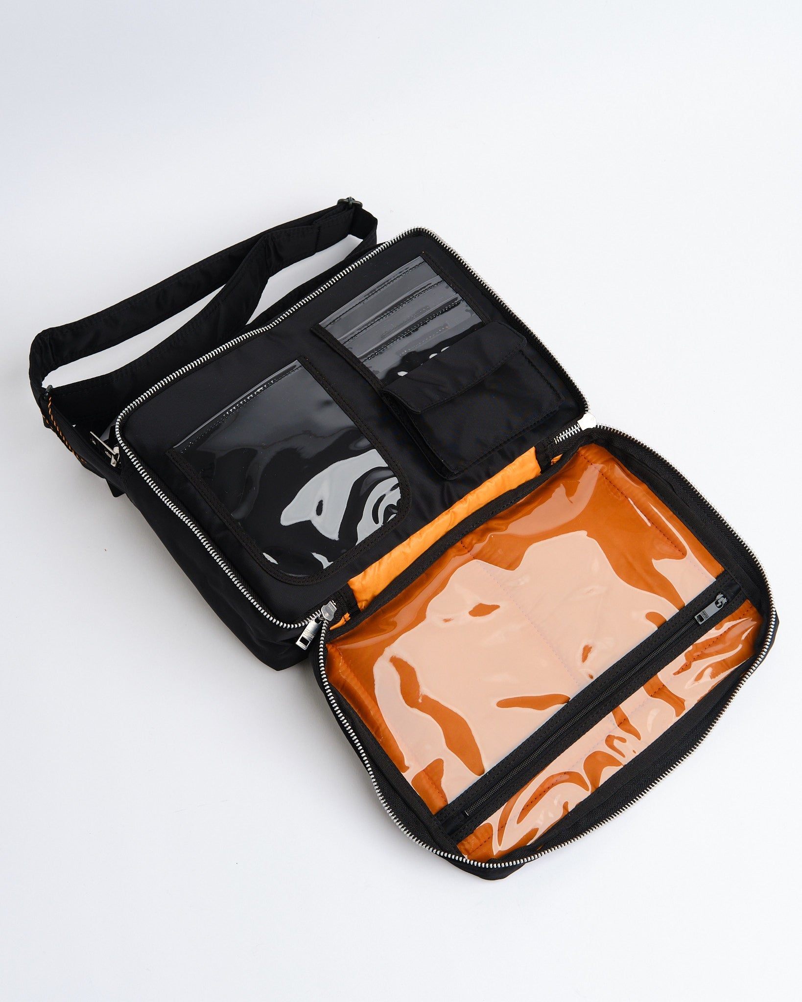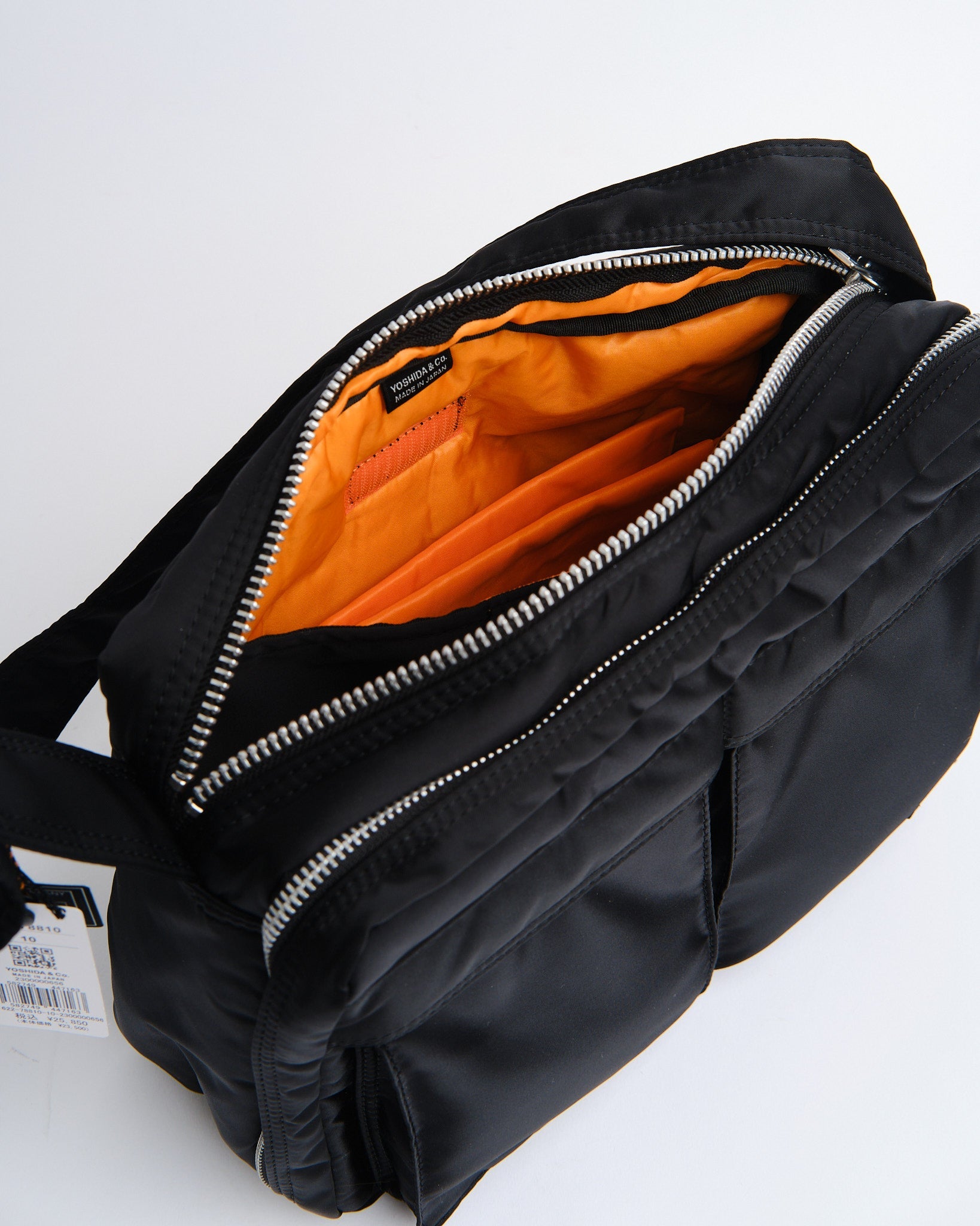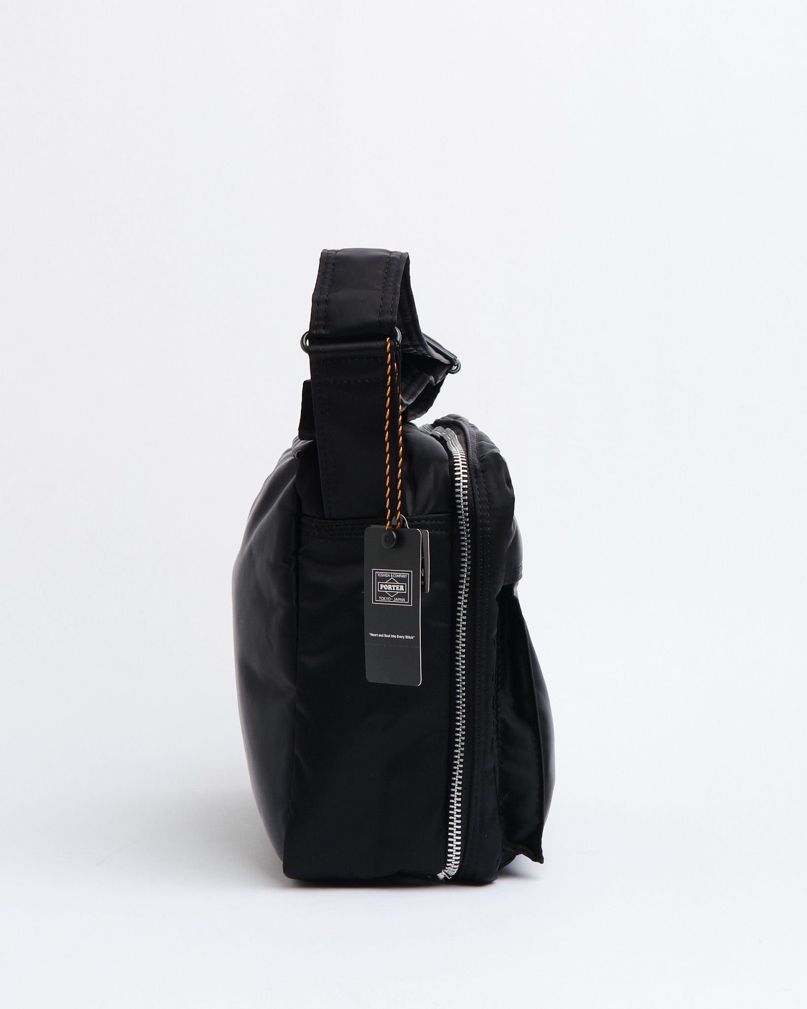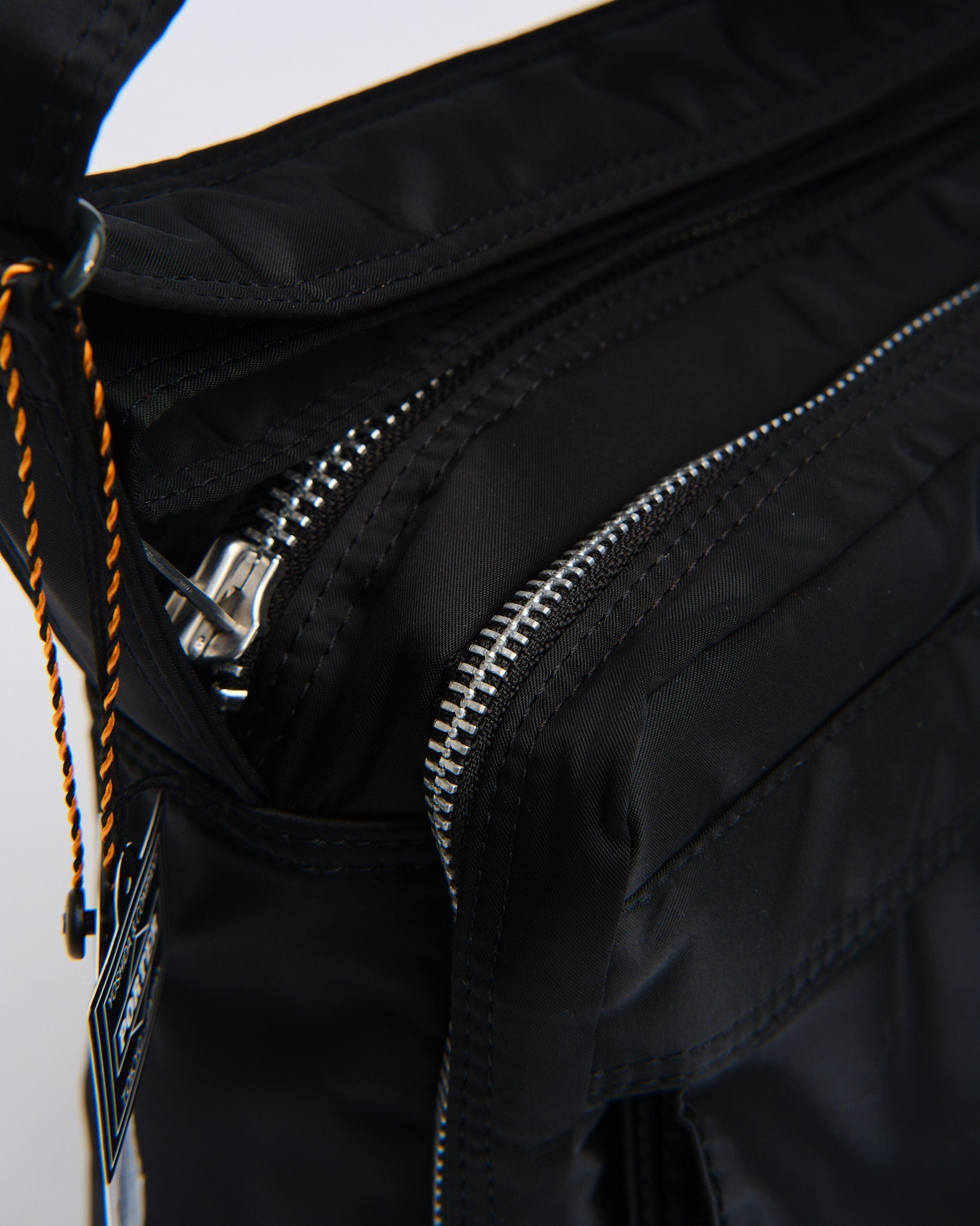 PORTER YOSHIDA TANKER AXELVÄSKA (L) i klassiskt Svart. Denna skickligt tillverkade väska från Japan är en symbol för sofistikering och funktionalitet. Tillverkad av högklassigt 100% nylon, garanterar den hållbarhet och en lätt känsla. Väskan har ett rymligt huvudfack med dragkedja och två främre fickor, som ger gott om förvaring för dina dagliga nödvändigheter. Förbättrad med ett vävt varumärkesmärke och en justerbar axelrem, erbjuder denna väska både stil och komfort. Med måtten Längd: 28cm, Höjd: 20cm, Djup: 11cm, är den perfekta följeslagaren för den urbana livsstilen.