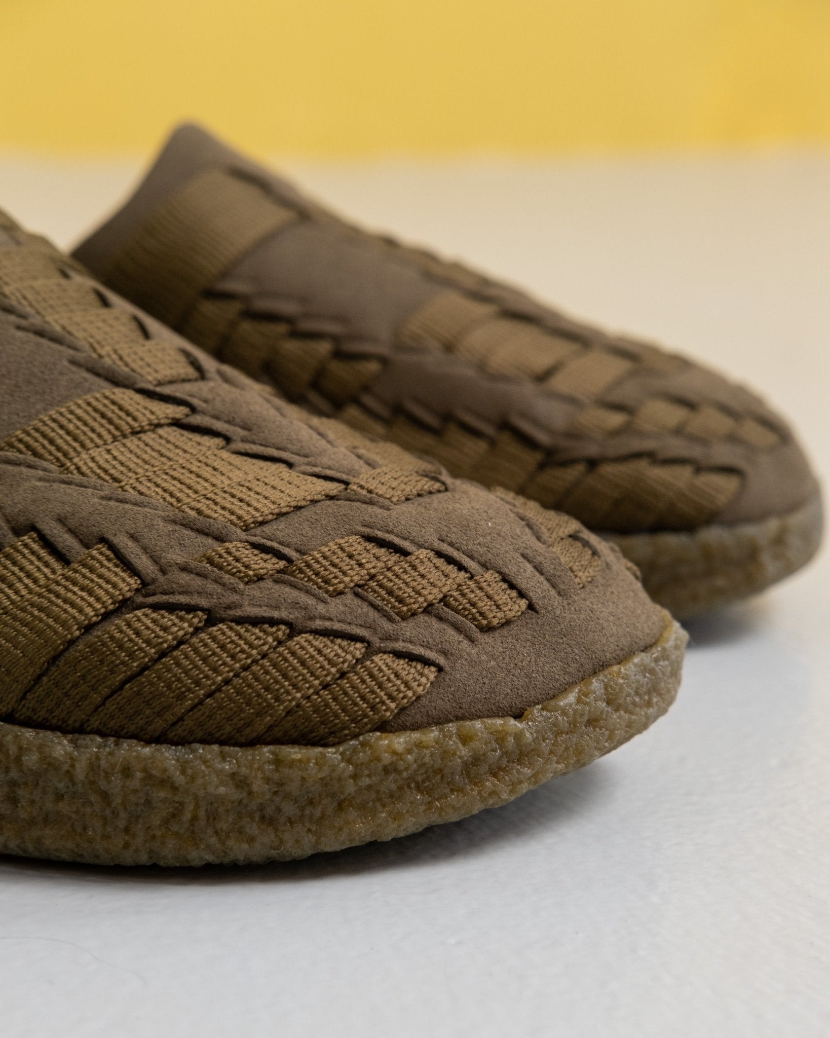 Thunderbird Suede/Vegan Leather Nylon Crepe Gum Sandaler Olive från Malibu Sandals. Handvävd mule-överdel som ger bra stöd med nylon- och mocka/veganläderremmar tillverkade av syntetisk mikrofiber. Med en robust tvådensitetsyttersula som är dämpad med en ergonomisk fotbädd. Sulan är tillverkad av malaysisk crepe gummiyttersula. Passar i rätt storlek. Tillverkad i Kambodja.