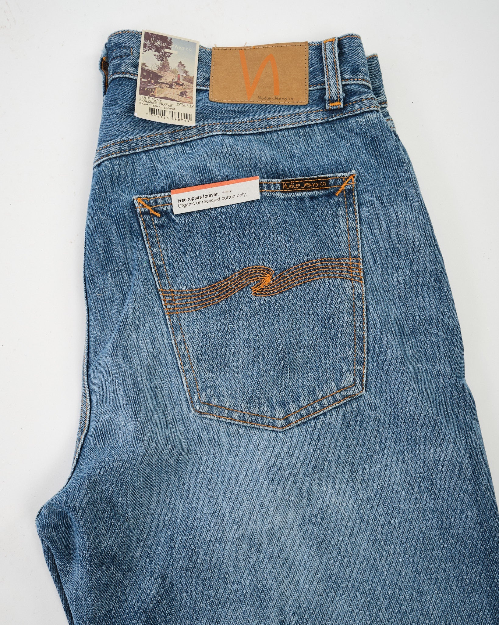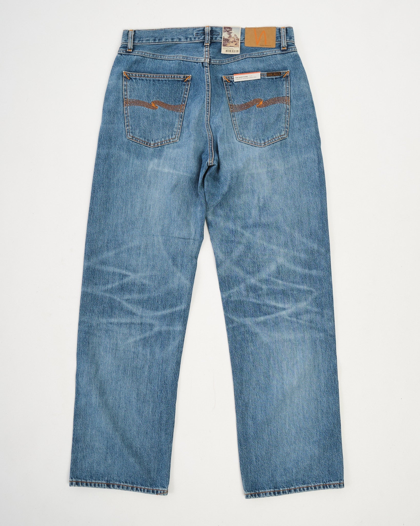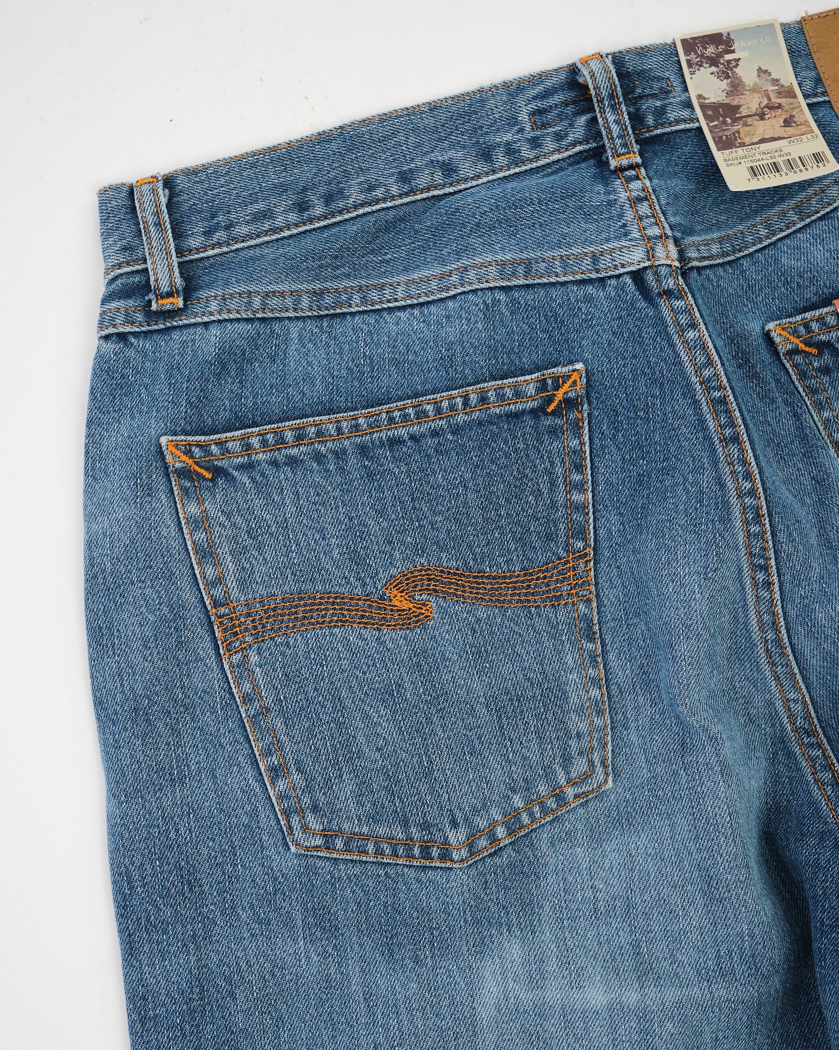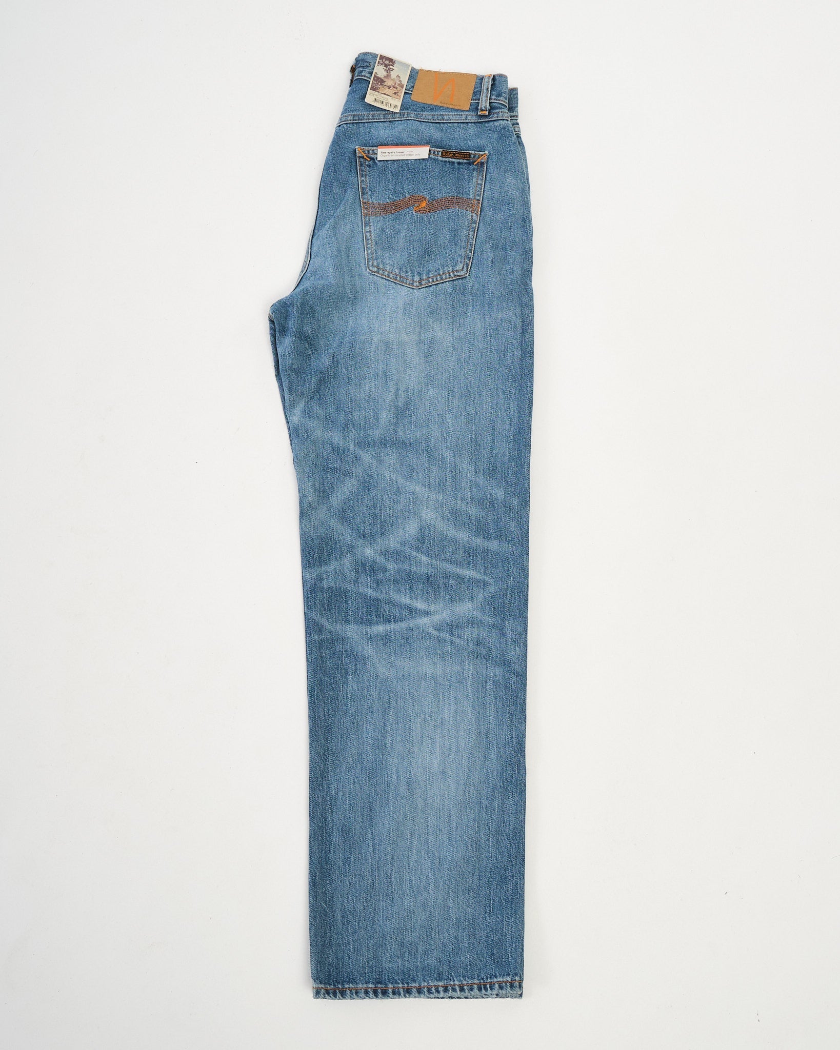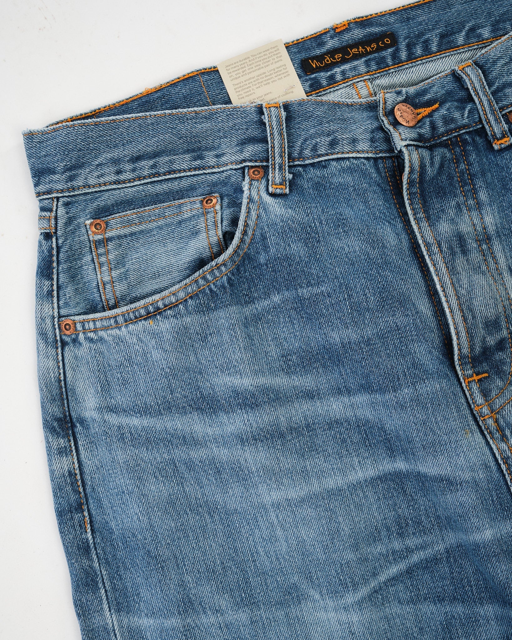 • Autentisk reproduktion av ett par slitna Nudie Jeans med realistisk blekning.