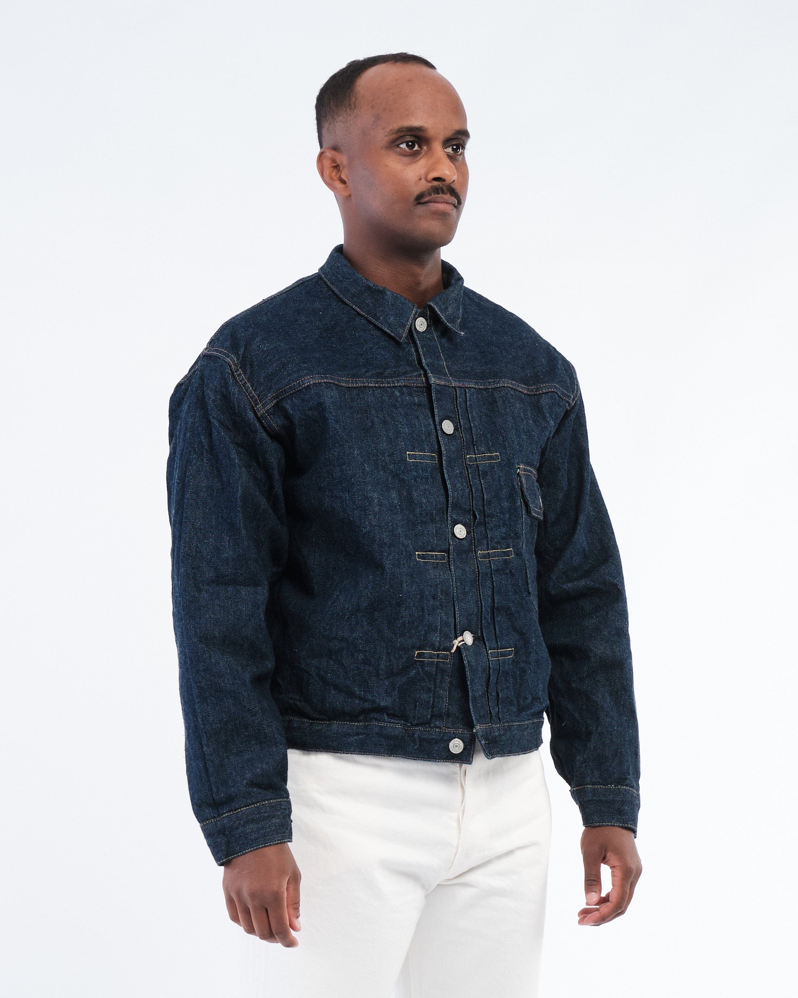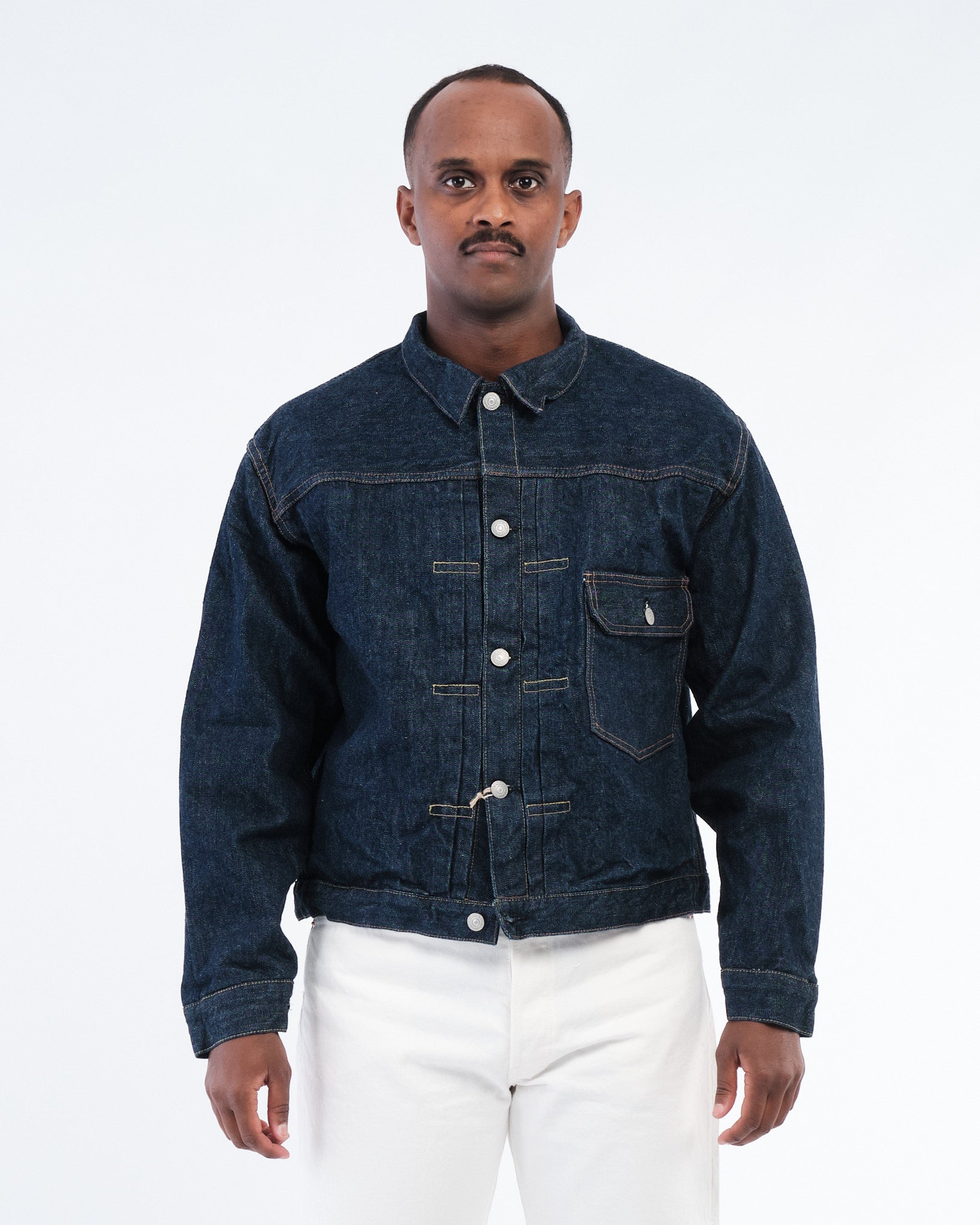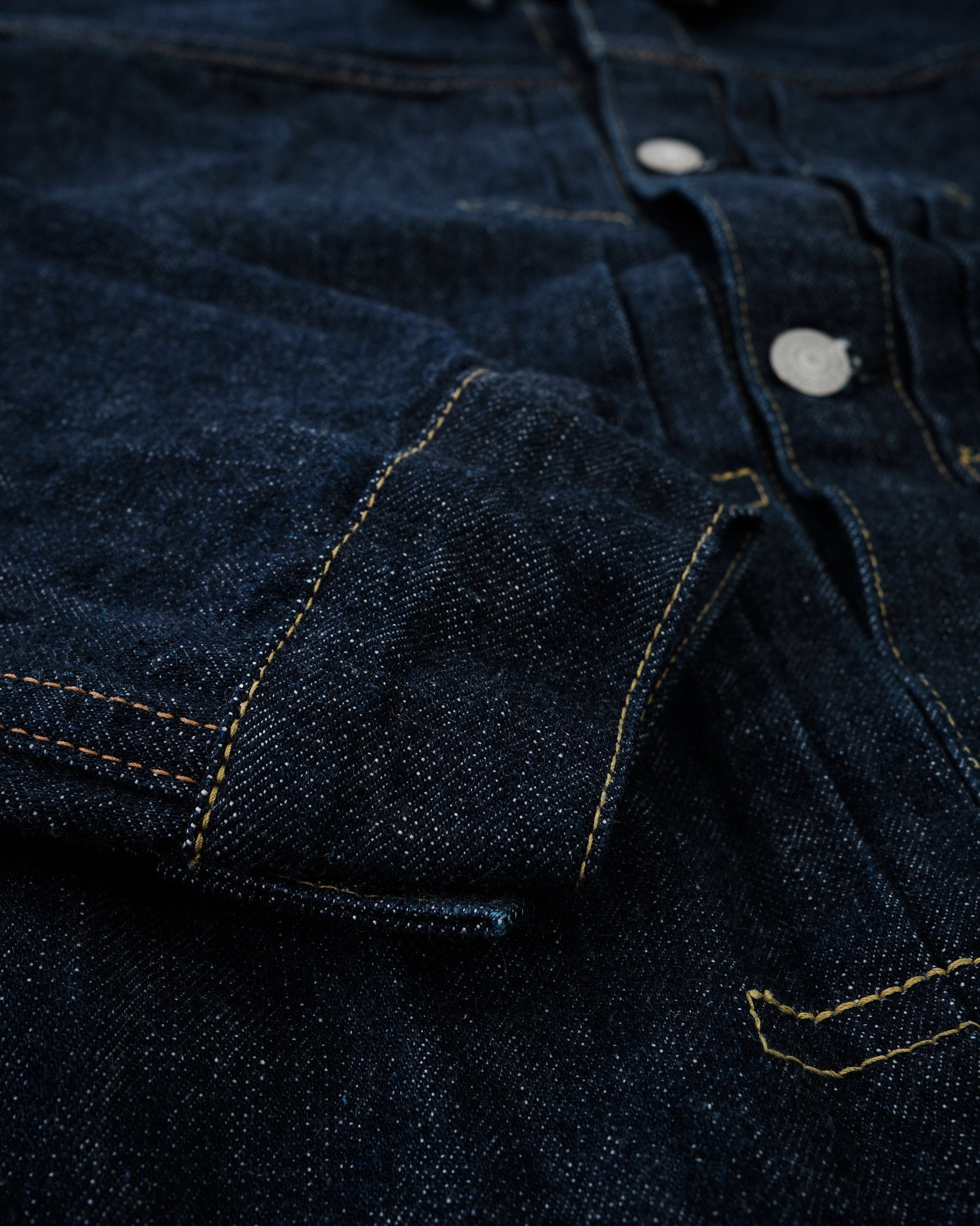100% japanskt bomull för hållbarhet och komfort En tvättbehandling för ett mjukt inarbetat vintageutseende Boxig silhuett för en avslappnad och mångsidig passform Veckad frontdetalj inspirerad av 1940-talets arbetskläder Märkta metallknappar för en tidsenlig estetik Bröstficka med lock för praktisk förvaring Förstärkta sömmar för långvarig hållbarhet Tidlös Type 1-design för en autentisk kulturarvsstil Designad och tillverkad i Japan Produktkod: 03-6011-81