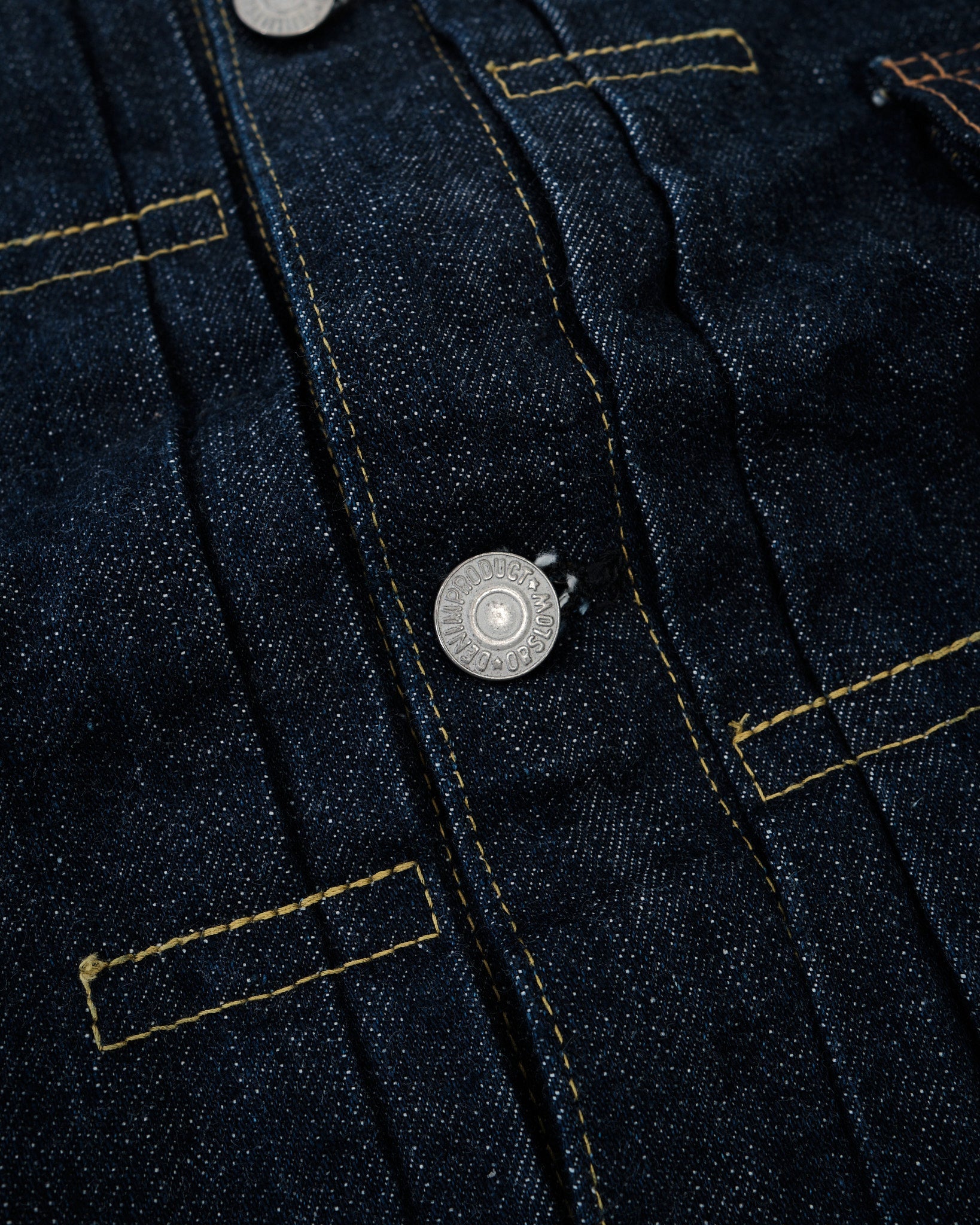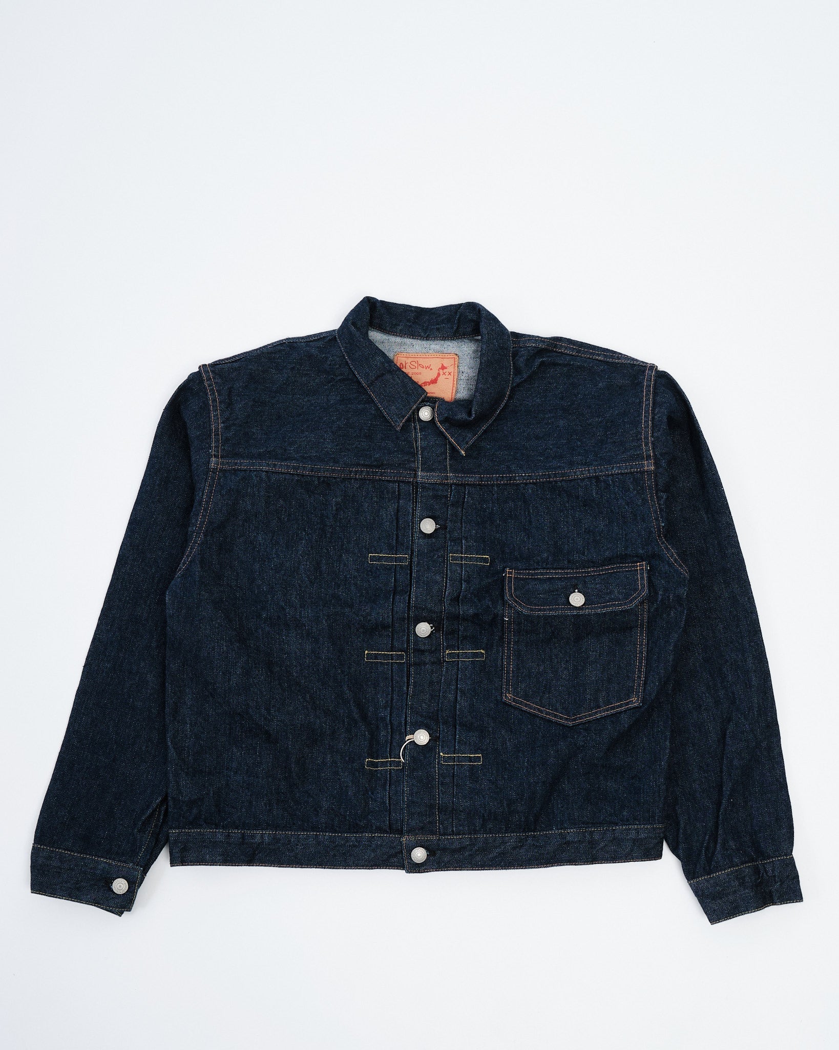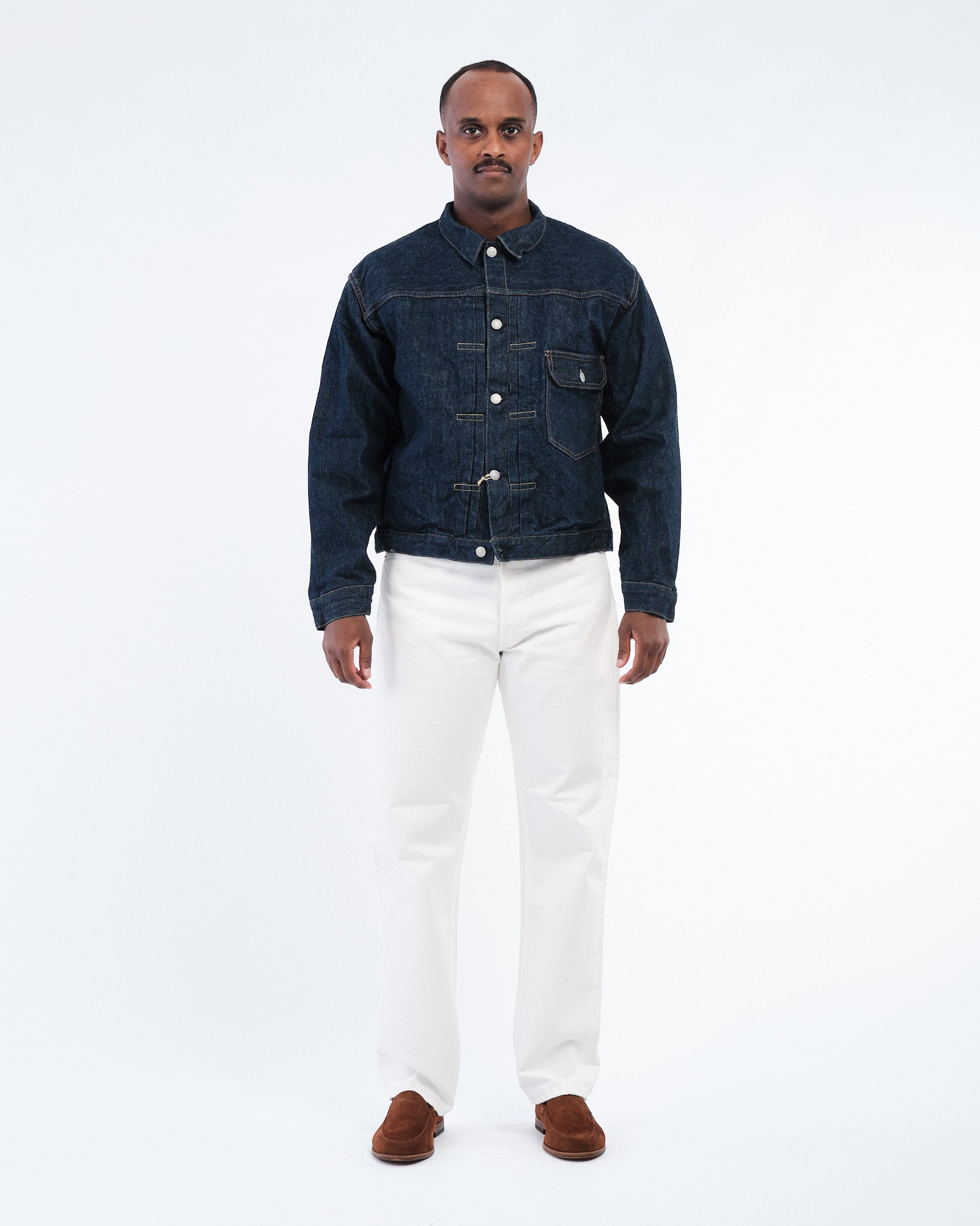 100% japanskt bomull för hållbarhet och komfort En tvättbehandling för ett mjukt inarbetat vintageutseende Boxig silhuett för en avslappnad och mångsidig passform Veckad frontdetalj inspirerad av 1940-talets arbetskläder Märkta metallknappar för en tidsenlig estetik Bröstficka med lock för praktisk förvaring Förstärkta sömmar för långvarig hållbarhet Tidlös Type 1-design för en autentisk kulturarvsstil Designad och tillverkad i Japan Produktkod: 03-6011-81