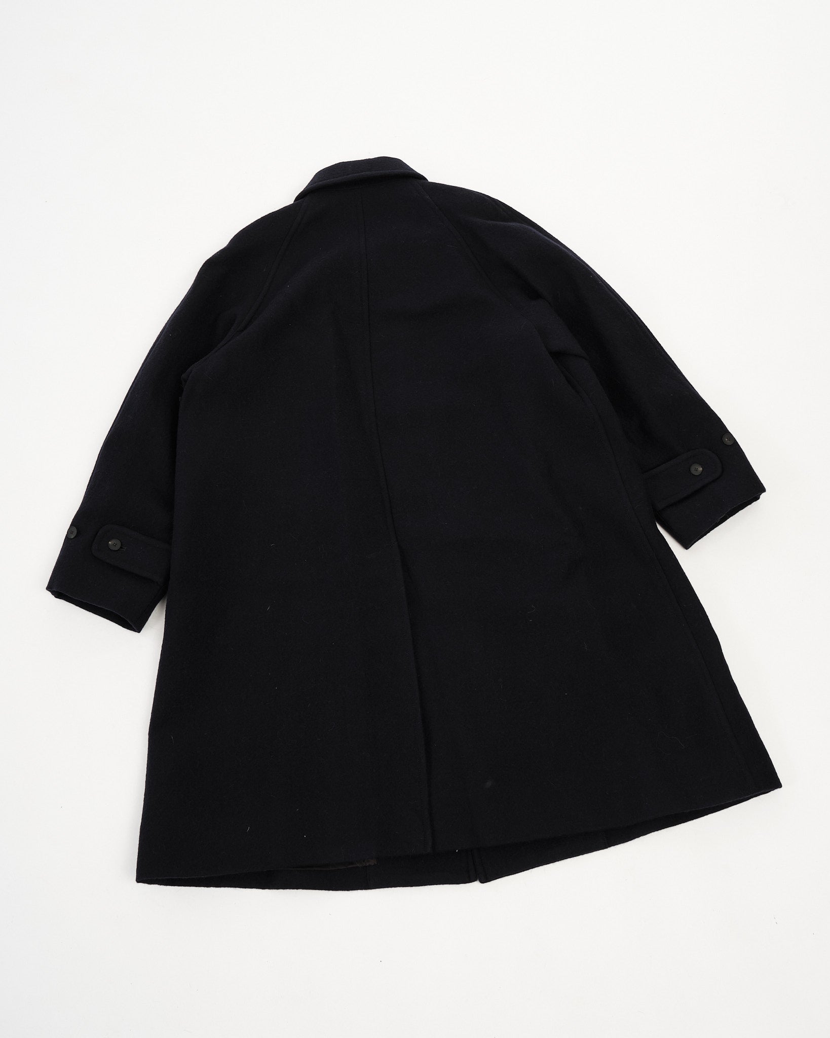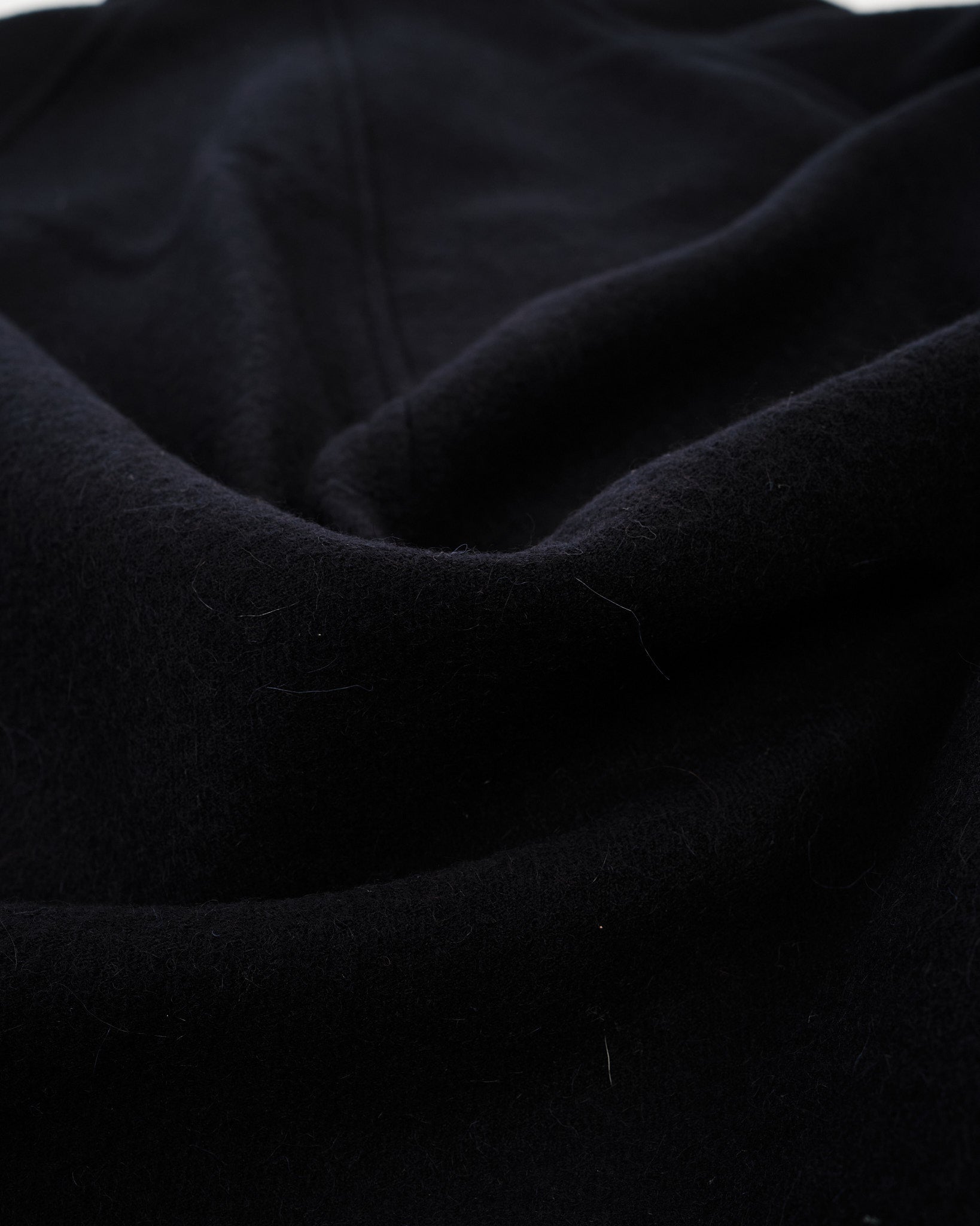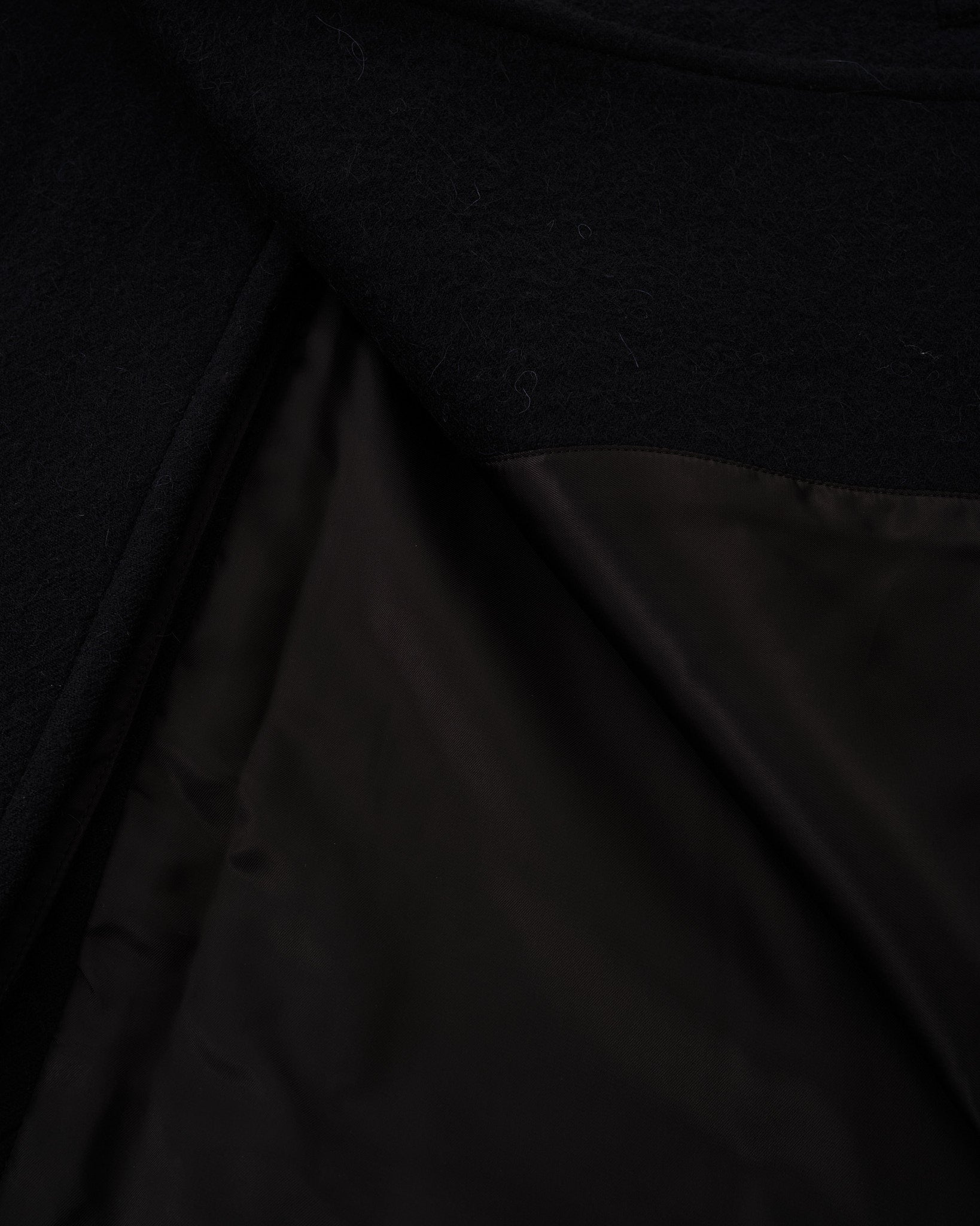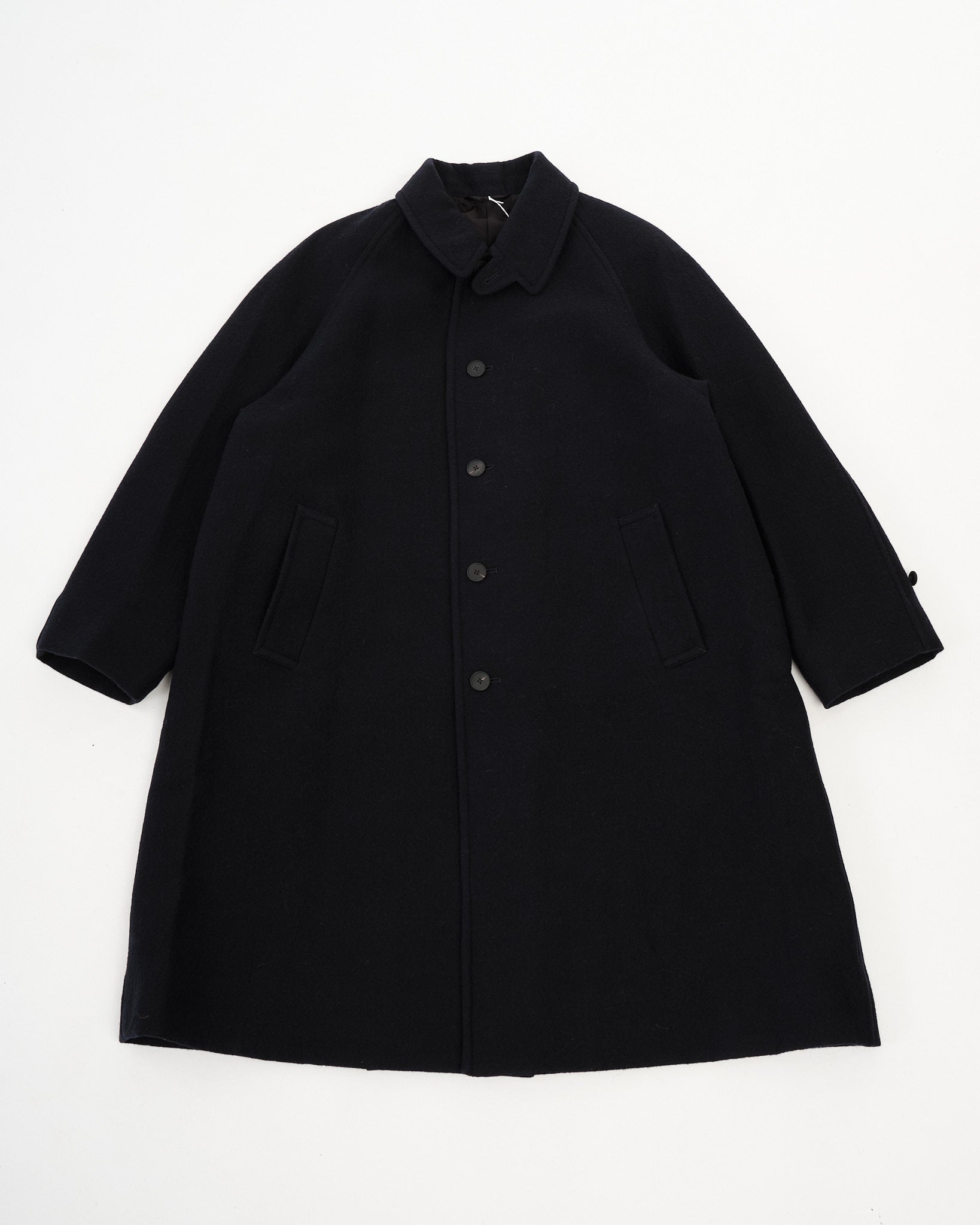 KAPTAIN SUNSHINE Umbrella Coat (KS25FCO04) i navy är en perfekt kombination av lyx och värme. Tillverkad av ett dubbelt tyg, vävt långsamt med hög densitet, blandar tyget varmt lama-alpaka och merinoull, vilket ger en exceptionellt mysig och sofistikerad känsla. Tyget är noggrant filtat för att skapa den perfekta balansen mellan volym och textur, vilket gör att kappan är både isolerande och elegant.