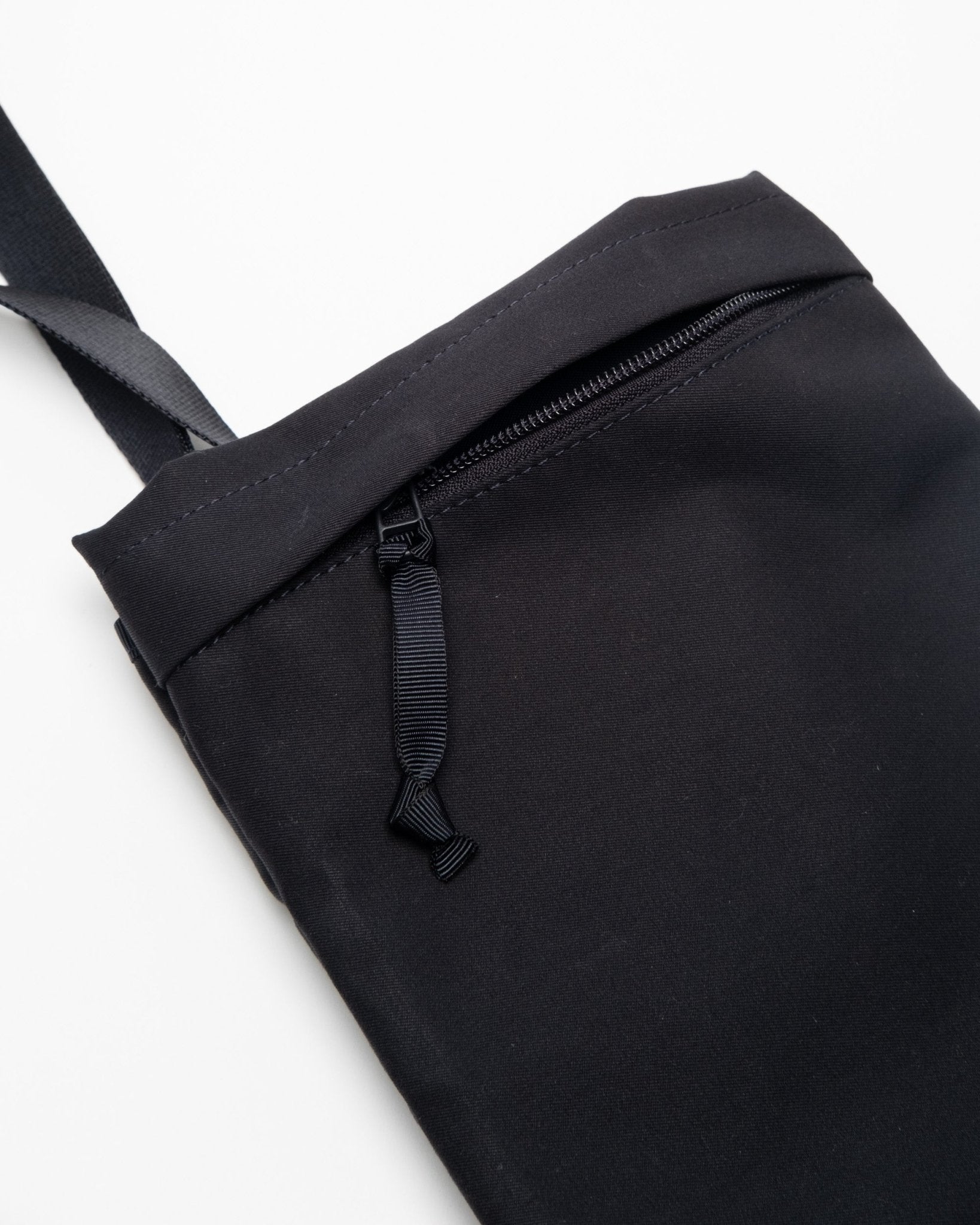 En mini axelväska eller mini tote för att bära dina väsentligheter. Tillverkad av ett hållbart 3-lagers tyg i bomullstwill och belagd med en andningsbar vattentät film för att säkerställa att denna väska kommer att hålla för evigt och hålla dina tillhörigheter säkra och torra. En huvudficka och en liten dragkedjeficka på baksidan. Tillverkad i Japan.