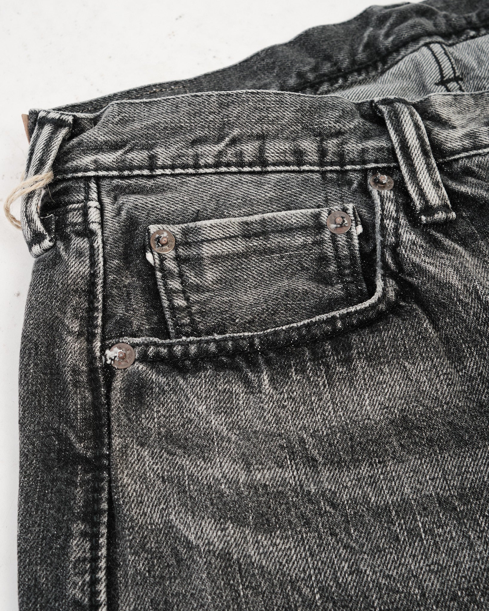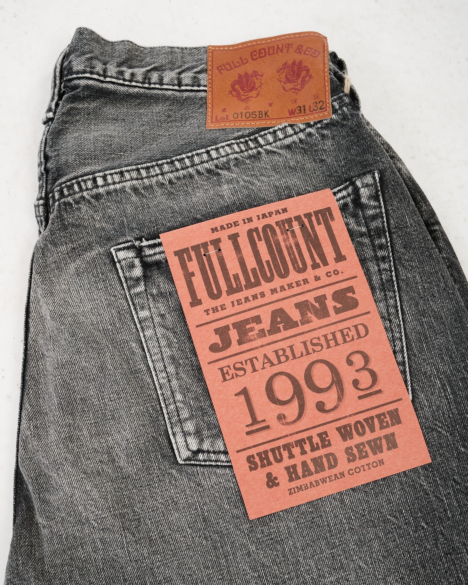 FULL COUNT 0105BKHW WIDE BLACK SELVEDGE DENIM DARTFORD (0105BKHW) är skapade för den som uppskattar den långsamma, vackra åldringen av premium svart denim. Tillverkade av 13,7oz original svart selvedge-denim, är dessa jeans vävda av 100 % Zimbabwe-bomull, vilket ger enastående mjukhet och hållbarhet. Den vida 0105-siluetten, en klassiker från Full Count, erbjuder en avslappnad men strukturerad passform. Till skillnad från indigofärgad denim bleknar repsfärgat svart tyg gradvis, vilket ger subtila vertikala slitningar över tid. Vävd långsamt på kraftvävstolar, bevarar denna denim styrka, textur och komfort, vilket bara traditionellt hantverk kan erbjuda.