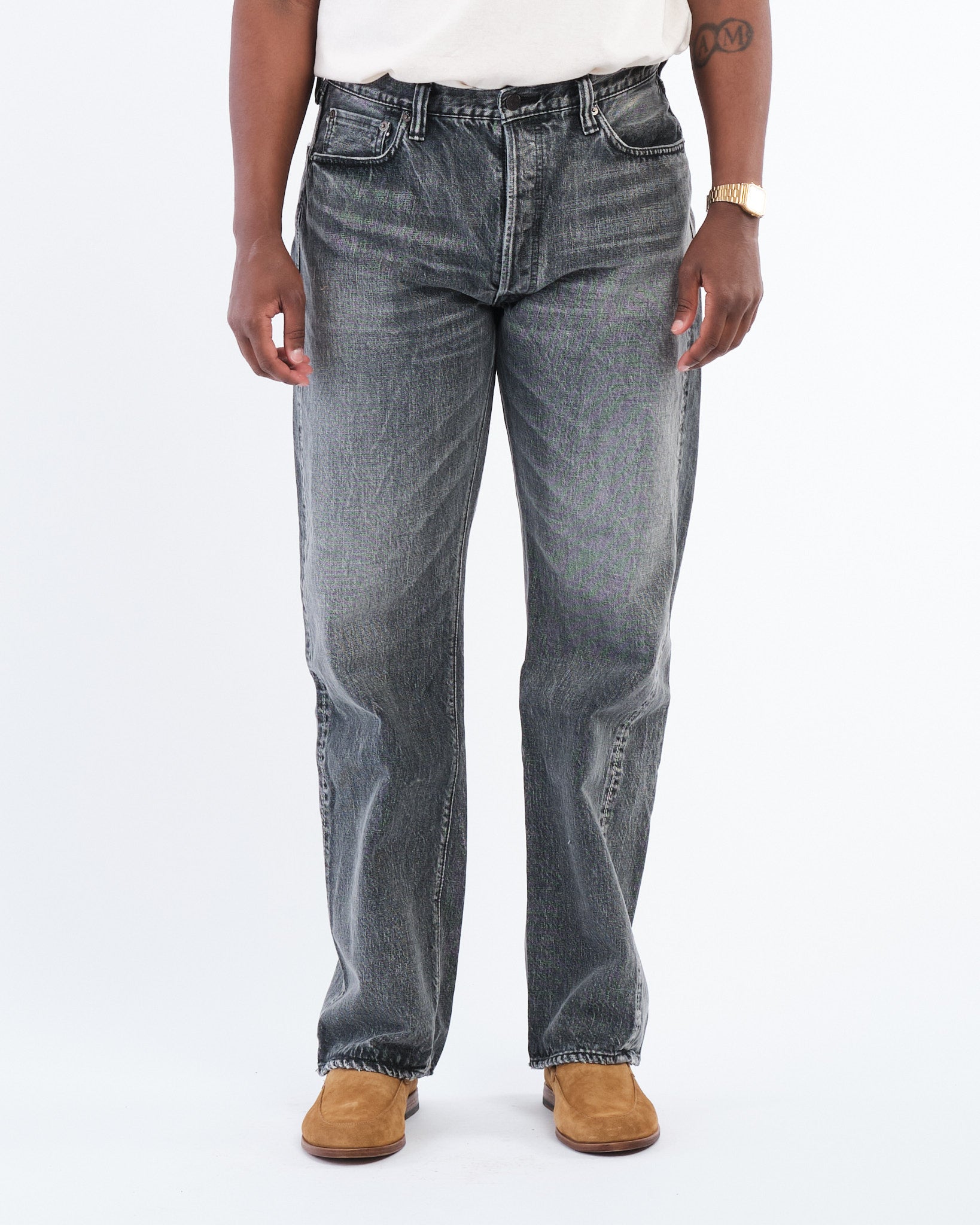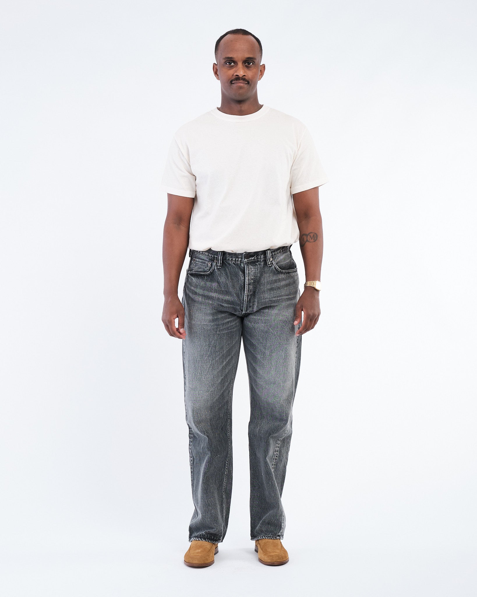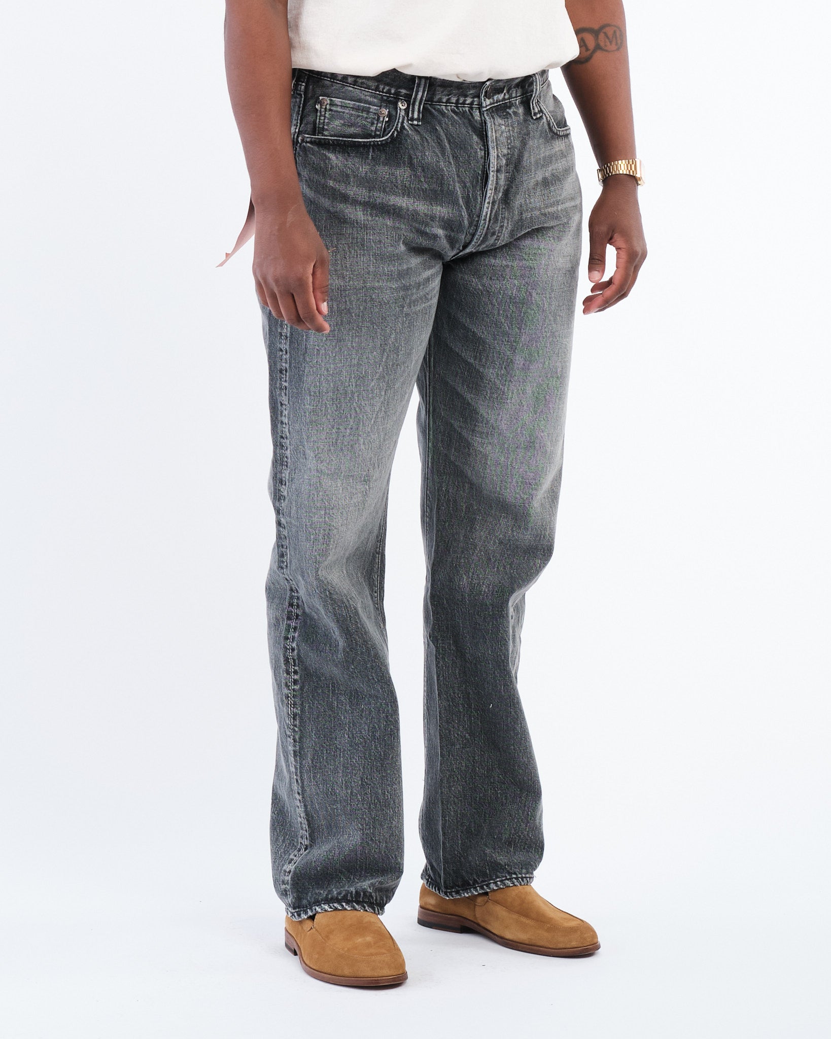 FULL COUNT 0105BKHW WIDE BLACK SELVEDGE DENIM DARTFORD (0105BKHW) är skapade för den som uppskattar den långsamma, vackra åldringen av premium svart denim. Tillverkade av 13,7oz original svart selvedge-denim, är dessa jeans vävda av 100 % Zimbabwe-bomull, vilket ger enastående mjukhet och hållbarhet. Den vida 0105-siluetten, en klassiker från Full Count, erbjuder en avslappnad men strukturerad passform. Till skillnad från indigofärgad denim bleknar repsfärgat svart tyg gradvis, vilket ger subtila vertikala slitningar över tid. Vävd långsamt på kraftvävstolar, bevarar denna denim styrka, textur och komfort, vilket bara traditionellt hantverk kan erbjuda.